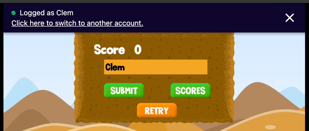 This is the recommended way to allow your players to connect, as it displays a minimal banner on top of your game. It allows players who don't want to authenticate to continue playing and the banner is not interrupting their play session: